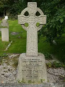 On their return to England, the couple started a preparatory school (Kelvin House, named after Lord Kelvin) in Ruislip, London.[5] In 1912, his first daughter Jean was born, followed in 1914 by Margaret. Todd died in 1915, at the age of 51, and is buried at St Martin's Church, Ruislip.