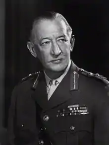 He was made GOC of the 1 (British) Corps on 4 January 1953[31] and, having been promoted to the rank of lieutenant-general on 2 February 1954,[32] became Director of Military Training at the War Office on 15 November 1954.[33] He was appointed director of operations in Malaya on 17 September 1957 during the Malayan Emergency[34] and, having been promoted to full general on 29 November 1958,[35] became General Officer Commanding-in-Chief (GOC-in-C) for Eastern Command on 29 June 1959.[36] He commanded the Northern Army Group and was Commander-in-Chief (C-in-C) of the British Army of the Rhine (BAOR) on 7 January 1960[37] and, having advanced to Knight Grand Cross of the Order of the Bath in the New Year Honours 1961,[38] became Adjutant-General to the Forces on 1 June 1963.[39] He became Chief of the General Staff (CGS), the professional head of the British Army, on 8 February 1965[40] and advised the British government on the implementation of the 1966 Defence White Paper which, inter alia, established the Territorial and Army Volunteer Reserve (TAVR). He was promoted to field marshal on 29 February 1968 on his retirement from the British Army.[41]