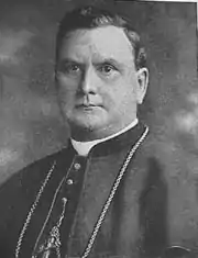 Quigley was appointed archbishop of the Archdiocese of Chicago on January 8, 1903, and installed on March 10, 1903.[9] With Quigley's help, in 1905, then Reverend Francis Kelley established the Catholic Extension Society to provide funding and resources to dioceses and parishes.[10] Quigley supported the establishment of ethnic parishes to address the needs of its newly arrived residents. In 1905, Quigley asked Father John De Schryver, SJ., a professor at St. Ignatius College Prep, to organize a parish for Belgian Catholics; St. John Berchmans Parish at Logan Square was established.[11] Quigley established other parishes for the Italian and Lithuanian communities. "Chicago's urban parishes flourished as an important spiritual, cultural, and educational component of Chicago's life."[12]