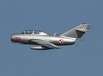 By then a major, on his second tour, Jabara was credited with shooting down nine more MiGs for a total of 15 victories.[11] On 16 May 1953 he recorded his seventh victory, and on 26 May he shot down two additional MiGs for a total of nine for the war.[6] On 10 June, Jabara shot down two more MiGs. Eight days later his flight group encountered four MiGs, and he encountered mechanical problems that nearly caused his aircraft to crash into an elevated hill. After resolving his aircraft's issues, he returned to the battle and was able to shoot down an already damaged MiG.[6] On 30 June, his first of two missions for the day resulted in one MiG victory. The second mission involved escorting F-86 Sabre fighter-bombers and he shot down a MiG before he came under heavy fire by other MiGs. In an attempt to evade their attack, he quickly accelerated but his engine flamed out. He maneuvered his aircraft for the ocean for a potential water rescue if he crashed, but he was able to restart the engine and return to base.[6] Jabara recorded his final victory on 15 July.[6] Two days later he flew his last two missions, and although he was eager to find more MiGs in an attempt to tie or surpass Joseph C. McConnell's 16 air victories, he did not see any opposing aircraft.[30] His 15 victories gave him the title of "triple ace", and his Korean War victories were all against MiG-15s.[31] He received a Silver Star, as well as another Distinguished Flying Cross for his additional air victories.[6] During the Korean War, Jabara was second in American air victories to McConnell, who recorded 16.[21] The Soviet Union had four other pilots who credited as having exceeded or tied Jabara's victories: Yevgeny Pepelyaev with 21 to 23, Nikolai Sutyagin with 21 to 22, and both Alexander Smorchkov and Lev Schukin with 15.[32]