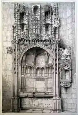He died on 24 May 1465.[3] The date is usually given as 1466, but a charter belonging to the abbey of Arbroath, dated 13 July 1465, speaks of him as lately deceased, and of his see as vacant.[4] Kennedy was buried in a magnificent tomb which he had caused to be built in St Salvator's Chapel. He had, it is believed, procured the design and materials from Italy. The ruins are still visible.