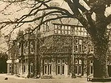 After waiting a year for the tenant to leave, Sawyer began altering and enlarging the house, engaging Messrs Wood and Kendrick of West Bromwich as architects and Thomas Rowbotham of Birmingham as builders.[88] The work transformed the structure of 1840 into a Tudor-style mansion with an entrance hall and picture gallery. [128]One of the internal features of the house was a magnificent oak staircase next to a stained glass window that bore Sawyer's coat of arms and the motto "Cherche et tu trouveras" ("Seek and thou shalt find").[88]The 1911 census records twenty-four rooms.[129]