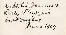 - ↑ The will of Sir James Sawyer, dated 14 December 1889, proved in Birmingham on 14 June 1919.
