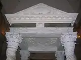 With his father-in-law, Robert Mylne, Smith worked on Caroline Park in Edinburgh (1685), and Drumlanrig Castle (1680s). His Canongate Kirk (1688–1690) is a basilica-plan, with a baroque facade. In 1691 Smith designed the mausoleum of Sir George Mackenzie of Rosehaugh, in Greyfriars Kirkyard. This circular structure is modelled on the Tempietto di San Pietro, designed by Donato Bramante (1444–1514), and illustrated in Palladio's Quattro Libri.[4] Smith's country houses follow the pattern established by William Bruce, with hipped roofs and pedimented fronts, in a plain but handsome Palladian style.[2] Hamilton Palace (1695) was fronted by giant corinthian columns, and a pedimented entrance, although was otherwise restrained.[4] He also designed the nearby estate office, now the Low Parks Museum. Dalkeith Palace (1702–1710) was modelled after William of Orange's palace at Het Loo in the Netherlands.[4]