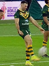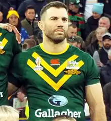 James Tedesco (born 8 January 1993), nicknamed "Teddy",[2] is a professional rugby league footballer who plays as a fullback[3] and captains the Sydney Roosters in the National Rugby League (NRL), New South Wales rugby league team and Australia.