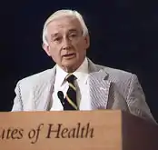 Symington, son of Stuart (U.S. senator, Missouri) and Evelyn (Wadsworth) Symington, was born on September 28, 1927, in Rochester, New York. He is the great-grandson of James Wolcott Wadsworth (U.S. Congress, New York) and grandson of James Wolcott Wadsworth Jr. (U.S. Congress, New York) and great-grandson of John Hay. James attended St. Bernard's School in New York City, St. Louis Country Day School in St. Louis, Missouri. In 1945, he graduated from Deerfield Academy in Massachusetts and enlisted in the United States Marine Corps at the age of 17.[1] He served in the Marine Corps as a private first class from 1945 to 1946. Symington earned his Bachelor of Arts degree from Yale University in 1950 where he sang as a member of the Whiffenpoofs and the Glee Club.[2] He also joined Berzelius secret society (according to the 1950 Yale Banner). He graduated from Columbia Law School in 1954.