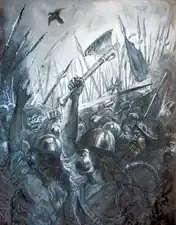 Carling was born on 31 December 1857 at 38 Addison Street, Liverpool. His parents Henry and Rose had been married in Roscommon, Ireland, his father's original surname was Carolan, anglicised to Carling following his emigration to England after being evicted during the Irish Famine. His mother's maiden name was Lynch.[1] His mother died when he was aged only 6 years. His father died 4 years after the death of his mother. From an early age James was known as the "little drawer" or "THE LITTLE CHALKER" and used Liverpool's street pavements for his art and to beg for money. He attended Holy Cross School in Fontenoy Street. After he was arrested by a policeman on Christmas Eve in 1865 and a week in a workhouse, he was sent to St George's Roman Catholic Boys Industrial School in Everton, Liverpool.[2]