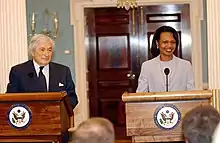 - ↑ "Remarks on the Appointment of James Wolfensohn as Special Envoy for Gaza Disengagement". U.S. Department of State. 14 April 2005. Archived from the original on 23 August 2016. Retrieved 29 October 2016.