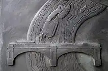 In the 1950s Woodford made a set of reliefs representing the four elements for the Lloyds building in Lime Street in the City of London. They were placed very high up; Arthur Byron in London's Statues (1981) describes them as "barely visible."[9] Following the demolition of the building they were installed on a wall at street level as part of the landscaping of the Willis Building on the same site.