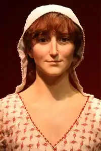 The Jane Austen Waxwork is a life size wax model of the author, commissioned by the Jane Austen Centre. It was unveiled at the Centre on 9 July 2014 and is currently on public display there.[3] The only verifiable image of her is a small watercolour painted by her sister Cassandra.[4] This, however, has been acknowledged by experts as a ‘poor attempt’ and was described by her niece as ‘hideously unlike’ her aunt Jane. At the same time though, there exists many contemporary descriptions of her by friends and it was in this fact that the origin of the sculpture lies.