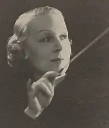 In 1930, Jeanne Poulet founded her own orchestra, the Orchestre féminin de Paris,[2] composed of twenty-five female musicians. She then called herself "Jane Evrard"[3] and was the first French woman to become a conductor.[4] In the daily Excelsior, Émile Vuillermoz wrote