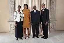Janet Kainembabazi Museveni (née Kataaha; born June 24, 1948) is a Ugandan politician who has been the First Lady of Uganda since 1986. She is married to President Yoweri Museveni, with whom she has four children. She has been Cabinet Minister of Education and Sports in the Ugandan Cabinet, since 6 June 2016, although her own education record is questioned.[1][2] She previously served as Minister for Karamoja Affairs in the Cabinet of Uganda from 27 May 2011 until 6 June 2016.[3][4] She also served as the elected Member of Parliament representing Ruhaama County in Ntungamo District, between 2011 and 2016. She published her autobiography, My Life's Journey, in 2011.[5][6]