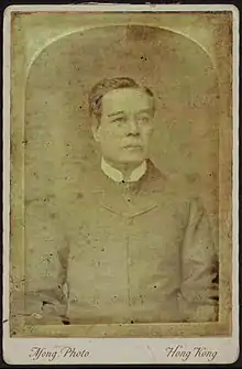 Januario Antonio de Carvalho (1830–1900) was a prominent member of the Portuguese community in Hong Kong during the late 19th century. He arrived in Hong Kong from Macao in 1842, and later became the Chief Cashier of the Colonial Treasurer of Hong Kong.[1] On October 7, 1878, he was nominated by the Governor General of Hong Kong John Pope Hennessy to be Colonial Treasurer (with a seat in the Legislative Council of Hong Kong). He would have been the first Portuguese member of the council, but his nomination was met with indignation from the British Home Office, which viewed Carvalho as an "alien" because of his Portuguese descent and thus unsuited for the position. After his rejection, Hennessy appointed Carvalho a Justice of the Peace. Carvalho later petitioned for, and was granted, status as a naturalized British subject on December 28, 1883.[1][2]