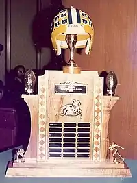 Following the 1977 appearance of Joe Roth – an All-American quarterback from Cal who was suffering from melanoma, which would lead to his death weeks after playing in the game – the game's MVP recognition was given as the Joe Roth Memorial Award.[24] The trophy is topped by Roth's helmet. The first recipient was Jimmy Cefalo of Penn State in 1978.[25]