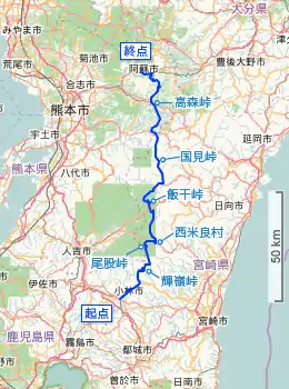 National Route 265 is a national highway of Japan connecting Kobayashi, Miyazaki and Aso, Kumamoto in Japan, with a total length of 203.8 km (126.64 mi).