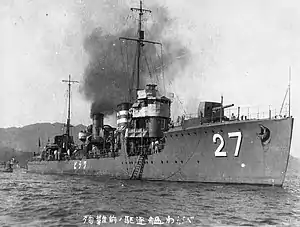 The Japanese destroyer Warabi () was one of 21 Momi-class destroyers built for the Imperial Japanese Navy (IJN) in the late 1910s. The ship was sunk on August 24, 1927 in a collision with the cruiser Jintsū off Miho Bay, and was struck from the naval list on September 15, 1927.