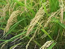 Japonica rice (Oryza sativa subsp. japonica), sometimes called sinica rice, is one of the two major domestic types of Asian rice varieties. Japonica rice is extensively cultivated and consumed in East Asia, whereas in most other regions indica rice is the dominant type of rice. Japonica rice originated from Central China, where it was first domesticated along the Yangtze River basin approximately 9,500 to 6,000 years ago.[1][2][3]