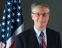 He has previously served as Deputy Chief of Mission of US Embassy Canberra, Australia, and US Embassy Baku, Azerbaijan; as Director of the Office of South Central European Affairs; and as Special Assistant for East Asian and Pacific Affairs in the US Department of State. He arrived in Tokyo on June 30, 2014, to assume his duties as Deputy Chief of Mission, following his assignment as Foreign Policy Advisor for the Combined Joint Task Force – Horn of Africa.[7][8] He has lived and worked in Asia for more than 18 years.[9] He received a Group Superior Honor Award from the Department of State for serving on the first Embassy team that entered Kobe in February 1995 to assist after the Great Hanshin earthquake.[10]