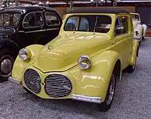 J.A. Grégoire designed an 11cv 6-cylinder car for Donnet in 1932. Only four prototypes were produced, one being shown at the Paris Salon of 1932 before Donnet went into liquidation. He then worked with Lucian Chenard to design two cars for Chenard et Walcker. They were of advanced design but were not a commercial success. In 1937 he designed the Amilcar Compound, produced by Hotchkiss from 1938 to the Second World War, by which time 681 examples had been made. It was constructed using another of Grégoire's ideas, a cast Alpax (light alloy) chassis frame. Other advanced features were rack and pinion steering and all independent suspension. But the car had its bad points, cable brakes and gear-change linkage and a side-valve engine although the latter was still common at this time. An overhead valve version came later. During the Second World War he secretly worked with his design team at his works at Asnières-sur-Seine on a small car the Aluminium "Francais-Grégoire". It had a chassis-body frame of light alloy, front-wheel drive, an air-cooled flat twin engine and independent suspension on all wheels. A four-seat car weighing only 880 pounds (400 kg) and could reach 60 mph (97 km/h) while returning 70 mpg. This design was to form the basis of the 1950 "Dyna" Panhard. In 1950 another Hotchkiss car the Hotchkiss Grégoire, was produced again with an alloy chassis and body. With independent suspension on all four wheels and fitted with a water-cooled flat four engine of 2 litres, ahead of the front axle, it was fast, with a top speed of 94 mph (151 km/h), but the car was expensive and only 250 examples were made by 1954. In 1956 Grégoire produced a two-seat convertible with a 2.2-litre supercharged flat-four engine producing 130 PS (96 kW; 128 hp) and, as in the case of the cars mentioned previously, front-wheel drive. All ten cars made were fitted with bodies designed and built by Henri Chapron.