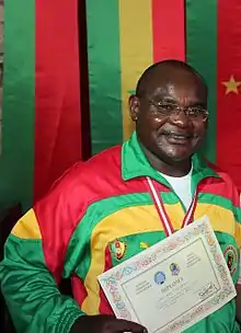 Jean Marc Ndjofang (born 15 March 1976 in Ebolowa[1]) is a Cameroonian draughts player,[2][3] resident since 2002 in the Netherlands. He was African champion in 2000 and 2010.[4] In 2011 at the Draughts World Championship he took third place.[5] In 2013 he placed second at the Draughts World Championship.[6] In 2015 he played the World Draughts Championship match with Alexander Georgiev from Russia.[7]