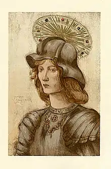 Her portrait of Saint Georges, for example, has been interpreted by some as a self-portrait, due in part to the figure's delicate facial features and long red hair.[1]