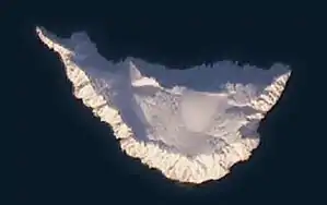 Jeannette is the second smallest island of the De Long group, being only 2 km (1.2 mi) in length. It has an area of approximately 3.3 km2 (1.3 sq mi). The island surface is mainly covered by a central ice cap and firn. The highest peak of the island is in the middle of the ice cap, reaching a height of 351 m (1,152 ft). A second subordinate peak reaches an elevation of 225 m (738 ft). On all sides, the shores of the island consist of 100–350 m (328–1,148 ft) high, continuous, and rocky seacliffs that are higher and steeper in the southern and southeastern part and shallower in the northern part.[1][2]