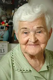 The IPN found that some Jews had been alerted by non-Jewish acquaintances the evening before that "a collective action was being prepared against the Jews".[1] Between 100 and 125 Jews who escaped the pogrom lived in an open ghetto in Jedwabne before being transferred to the Łomża ghetto in November 1942. Several escaped to other towns.[52] In November 1942, when the Germans began putting ghetto inmates on trains to the Auschwitz concentration camp for extermination, seven of them—Moshe Olszewicz, his wife, Lea, and his brother, Dov; Lea and Jacob Kubran; Józef Grądowski; and Szmuel Wasersztajn—escaped again to the nearby hamlet of Janczewko. There they were hidden by Antonina Wyrzykowska and Aleksander Wyrzykowski, on the couple's farm, from November 1942 to January 1945.[53][54] Despite a very "aggressive attitude from Polish neighbours" and inspections by German personnel,[55] the Wyrzykowskis managed to hide the group until the Red Army liberated Janczewko from the German occupiers in January 1945. Shortly after, the Wyrzykowskis were beaten by a group of Polish nationalists for having helped Jews; the couple had to leave the area and eventually moved to Milanówek, near Warsaw.[56][57]