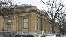 The Jefferson Center or Old Central Post Office is a historic building in downtown Toledo, Ohio originally built in 1911 and used by many different organizations. It was designed by government architect J. Knox Taylor in a classical architectural style and features a sandstone exterior.