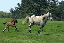 - Chongma (총마, gray): The entire coat color is white but may have some bay, chestnut, and black sprinkled through the white.