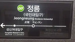 Jeongneung Station is a station on the Ui LRT located in Jeongneung-dong, Seongbuk-gu, Seoul.[1][2] It opened on the 2 September 2017.[3]