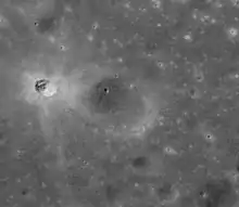 Next to Jerik is an even smaller (~100 m), unnamed crater with a bright ray system. The name of the crater was approved by the IAU in 1976, and refers to a Scandinavian male given name.[1]