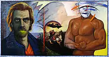 De La Cruz is listed among the three dozen most influential regional artists of the twentieth century (Denver Post survey of regional curators).[3] His is the only Spanish surname. At the first International Latino Art Auction held in Phoenix, AZ, in conjunction with Sotheby's (2003), De La Cruz proved to be the bestselling artist of the auction and drew the highest auction price for a single work. The Denver Art Museum's first purchase of a living Hispanic's work for its permanent collection was a De La Cruz.[4] Years later, he was the only artist considered when that same museum wanted to commission a contemporary digital work commemorating the opening of its new Libeskind Building (2007). He was the recipient of back-to-back artist residency grants from Colorado in his early career and also received their very last painting fellowship in 2000. For a spell in 2006, works by De La Cruz were included in three unrelated art museum exhibits in Denver (the Denver Art Museum, El Museo, and the Mizel). Other honors include the award of Best Art Event of the Year by Westword Magazine and an appointment to Denver's Commission on Arts and Culture.