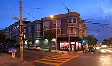 In June, Garcia graduated from the local Menlo Oaks school. He then moved with his family back to San Francisco, where they lived in an apartment above the family bar, a newly built replacement for the original, which had been torn down to make way for a freeway entrance.[43] Two months later, on Garcia's fifteenth birthday, his mother bought an accordion for him, to his great disappointment.[25] Garcia had long been captivated by many rhythm and blues artists, especially Chuck Berry and Bo Diddley, leaving him craving an electric guitar.[43] After some pleading, his mother exchanged the accordion for a Danelectro with a small amplifier at a local pawnshop.[44] Garcia's stepfather, who was somewhat proficient with instruments, helped tune his guitar to an unusual open tuning.[39]