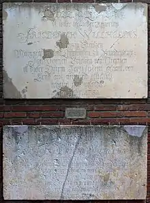 Commemorative plaques of 1728 and 1731, translated from old to new Jerusalem Church