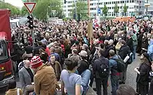 The now void previous location of the old Jerusalem Church south of Axel Springer Verlag during a demonstration in 2008.