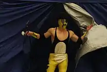 Jervis Cottonbelly[1] is a professional wrestling gimmick that originates from Chikara. He has appeared in several independent promotions including Championship Wrestling from Hollywood. The masked persona was originally portrayed in the 2000s by TJ Cain, until the 2010s when the independent, wrestler Kevin Condron (also known as Snowflake and Kid Cyclone) started portraying it. Condron also adopted the name Gentleman Jervis for the character.