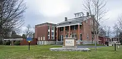 Jervis Public Library is a historic library building located in Rome in Oneida County, New York. It was built in 1858 as the residence of John B. Jervis (1795–1885). The original house is a rectangular, 2+12-story brick structure with a slate-covered gable roof and cupola. The facade features a 2-story portico supported by four massive Doric order brick columns. A 2-story library extension was added in 1926 and in 1967 a modern library facility was added. Also on the property is a 2-story carriage house built about 1860.[2]