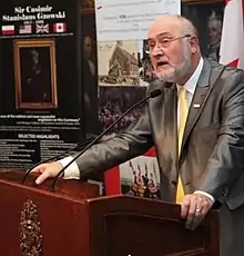 Holder of many Canadian awards, at both provincial and federal levels. Received Ted Glista Memorial Award 2003 for community activities. Awarded Gold Cross of Merit (2007), Knight’s Cross of the Order of Merit of the Republic of Poland (2005), the Officer’s Cross of the Order of Merit of the Republic of Poland (2010), the Medal of the Mayor of Lublin (2001, 2019), the Medal of the Lublin Union (2005), the Gold Award of Merit of the Canadian Polish Congress (2009), the Silver Medal for Merit to Culture – Gloria Artis (2013), the Queen Elizabeth II Diamond Jubilee Medal (2012), the Sovereign's Medal for Volunteers (2017), the Medal of the Senate of the Republic of Poland (2018), and the Sir C.S. Gzowski Leadership Medal (2019).[12]