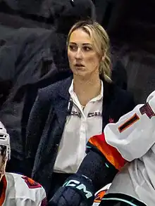 In July 2022, she was hired as assistant coach of the Coachella Valley Firebirds, the top minor league affiliate of the NHL's Seattle Kraken. In her new role, she became the first woman to be employed on a full-time basis as a behind-the-bench coach in the AHL.[14]