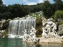 Sloping sites at the palaces of Caserta and Peterhof permitted grand cascades. At Caserta, a rill of water even flows down the handrail of a staircase balustrade.