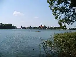 The lake with the panorama of the town of Chełmża in the background