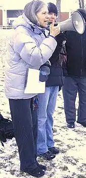 On August 1, Stein, Honkala and three others were arrested during a sit-in at a Philadelphia bank to protest housing foreclosures on behalf of several city residents struggling to keep their homes.[38] On October 16, Stein and Honkala were arrested after they tried to enter the site of the presidential debate at Hofstra University while protesting the exclusion of smaller political parties, such as the Green Party, from the debates.[39] Stein likened her arrest to the persecution of dissident Sergei Udaltsov in Russia.[40] On October 31, Stein was arrested in Texas for criminal trespass, after trying to deliver food and supplies to environmental activists of Tar Sands Blockade camped out in trees protesting the construction of the Keystone XL pipeline.[41][42]
