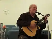Jim Scott singing at a concert of mostly Pete Seeger songs at the Unitarian Universalist Fellowship of Athens in 2017