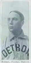 James Erigena Barrett (March 28, 1875 – October 24, 1921) was a Major League Baseball (MLB) center fielder. A native of Athol, Massachusetts, he batted left-handed and threw right-handed. Barrett played 10 seasons in the major leagues with the Cincinnati Reds (1899–1900, 1906), Detroit Tigers (1901–05), and Boston Red Sox (1907–08). Barrett was the first star for the Tigers, playing for the Tigers in the first five years of their existence. He left the Tigers with the arrival of a new center fielder Ty Cobb. Barrett had a career batting average of .291 (21 points higher than the league average during the deadball years in which he played). He also had a career on-base percentage of .379. In 1903 and 1904, he led the American League in times on base and walks. Despite Barrett's having played in only 866 major league games, baseball historian, Bill James, ranks Barrett as the 72nd best center fielder of all time.[1]