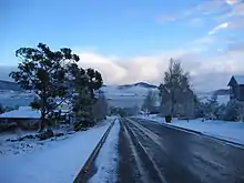 Jindabyne is one of the highest settlements of its size in Australia, at 918 metres above sea level.[3] Snowfalls regularly occur during winter. In mid-July in 2004 and 2005, snow fell up to half a metre following freak snowfalls over a large area of New South Wales. Jindabyne is connected to the surrounding area by Kosciuszko Road East to Cooma then North to Canberra, the Alpine Way West to the Riverina and Wodonga and the Barry Way to the South and Gippsland.