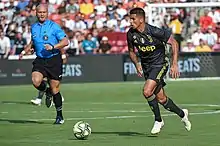 On 27 June 2018, Cancelo was signed by Juventus on a five-year contract for €40.4 million,[36] making his domestic league debut on 18 August in a 3–2 away win against Chievo Verona.[37] He won his first trophy with the club in January 2019, featuring the entire 1–0 victory over Milan for the Supercoppa Italiana.[38][39][40] He scored his first league goal the same month, as his team came from behind to defeat Lazio 2–1 at the Stadio Olimpico in Rome; he also helped win the decisive match-winning penalty later during the same game, which was subsequently converted by compatriot Cristiano Ronaldo.[41][42] On 6 October, Cancelo provided an assist for Rodrigo Bentancur in a 2–0 away win over Udinese.[43] On 7 December, Cancelo provided an assist for Mario Mandžukić in a 1–0 home win over against his former club Inter Milan in the Derby d'Italia.[44]