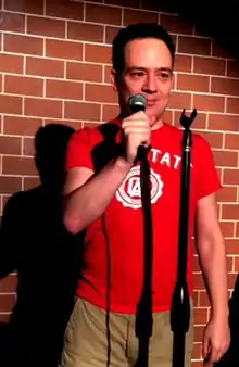 ![]() Luijten performing at the Ha Ha Cafe Comedy Club in North Hollywood | |
