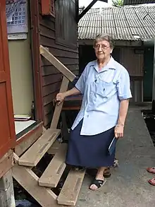 Sister Joan Kyrle Evans, PBVM, is a retired Australian religious sister born in 1931 who was based in the Klong Toei slums in Bangkok, Thailand. She is a member of the Western Australian Congregation of Presentation Sisters. Sister Joan is a charity activist, who helps the needy youth and families in the slums of the Thai capital. Each fortnight, Sister Joan's project supports around 100 babies with deliveries of powdered milk.[1]