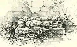 The tombs of Lord and Lady Morton as they appeared in 1902. Note the blank faces and missing hands