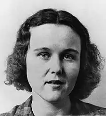 Joan Vollmer was born in Ossining, New York and raised in Loudonville, New York. She graduated from St. Agnes School in 1939 and attended Barnard College in New York City on a scholarship, also studying journalism at Columbia University.[3][4] Vollmer met Edie Parker at the West End Bar and the two moved in together in the first of a series of apartments in New York's Upper West Side that they shared with the writers, hustlers, alcoholics and drug addicts that later became known as the Beats. These included: William S. Burroughs, Jack Kerouac, Allen Ginsberg, Lucien Carr, Herbert Huncke, Vickie Russell (a prostitute and addict who appears as "Mary" in Burroughs' novel Junkie), and Hal Chase, a Columbia University graduate student from Denver.[5] In The Women of the Beat Generation, Brenda Knight wrote: